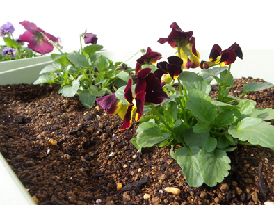 上:玄関先のパンジービオラ